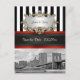 NYC Skyline Brooklyn Bridge, Boat Invitation Suite - Svart Vit Rand / Svart Röd Band - Save the Date Postkort