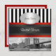 NYC Skyline Brooklyn Bridge, Boat Invation Suite - Inbjudningskort för möhippan Elegant, snyggt, chic anpassade Bjud in och tillbehör med Öster River View of New York City's iconic Brooklyn Bridge och Municipal Byggnads med en båt förbi. Den har också ett svart och vitt rand mönster, ett rött och svart band och en vit övertoningsetikett i ett pärlutseende ram. Bilden är i svartvitt och en vit övertoningsetikett med guld utseende ram. Den här produkten ingår i en uppsättning matchande utformningar som är lätta att anpassade för många tillfälle och händelser. Om du behöver separat matchande OSA kort, Tackkort, Frimärke, magneter, favorittaggar, eskort, monteringskort, vin-etiketter, menyer, händelseprogram eller andra tillbehör, ska du checka ut våra andra listor. Om du vill se den här designen i olika färg eller med inslag kan du se den i några av våra andra utformningar, om du vill ha den med andra NYCisMyMuse-foton som du ser i vår butik, eller om du behöver en matchande produkt som du inte hittar i listan, kontakta oss så tar vi oss till lycklig för att ta emot dig. Om du behöver hjälp med att anpassa din design på annat sätt bör du dessutom informera oss. Observera att detta är en grafisk design och inte innehåller några egentliga tyger, rosett band, metall eller prägling. 2012 ©NYCisMyMuse Alla höger reserverade