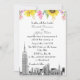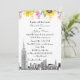 NYC Skyline Etch look White med Gult Sunblommor, Rosa Flowers Gräns - Bröllopsinbjudan ======== Anpassade Inbjudan och tillbehör med en svartvit etsningsyta av ikonen New York City Skyline med ESB och en blommigt gräns.============= 2020 ©NYCisMyMy Använd alla höger reserverade