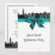 NYC Wide Skyline Etched BW Teal Studenten Inbjudningar