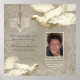 FÄRGPALETT: kräm, tan, grå, grå och brun. DESIGNKOLLEKTION: En minnesgåva, minnespresent, dekorativ väggposter för heminredning. Ditt 5" x 7" fotograf ersätter provet i denna design. Texten lyder: "När någon du älskar blir ett minne, blir minnet en skatt." Din älskades namn, födelsedatum och dödsdatum samt relation är anpassningsbar via de enkla mallarna. Personaliseringen är direkt under en vintage nyckel som hänger på ett band, med en fredsdubba, eller Helig Andes-dubba som ser på. Ett etsat barockprydd hjärta är under nyckeln och en annan dubba vilar längst ner på bilden. Dekorera med "Vintage Doves" en samling designad av Audrey Jeanne Roberts med nya akvareller, eleganta antika handmålade duvor, skelettnyckel och gamla etsade tryckornamentillustrationer. Det finns en krämfärgad bakgrund på ytterkanten av kudden och baksidan som har antika handskrivna texter, bok