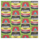 Den ikoniska markören för sydligaste punkten i Nyckel Väster, Florida i en ljusa färger mönster-utformning på en grön bakgrund för handflatan träd. Fira det tropiska livet i Florida Nycklar.