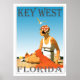 En retro poster som aldrig varit tidigare. Ett kreativ om en gammal poster som borde ha gjorts. Florida-stranden i retro stil från konsthändan. Ljusa färger med en kvinna på stranden under blå himmel.