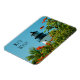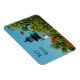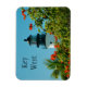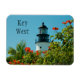 Fotografi över Väster fyr i Nyckel i Väster i Nyckel, Florida med handflatan och blommar träd i förgrunden. Anpassadets text.