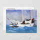 Ett vykort för bra med vattenfärgsmålning, Nyckel Väster, Hauling Anchor (1903), av den amerikanska konstnären Winslow Homer (1836-1910), en amerikansk målare från realismen. Detta vykort visar en segelbåt som på ett skickligt sätt glider igenom det pulserande blå vatten längs kusten i Nyckel Väster i Florida.