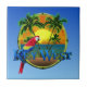 Nyckel Väster Florida, den sydligaste staden i Förenade Stater. Strandmålning med handflatan träd, rund bambu ram och en färgstark papegoja över havets blå vatten.