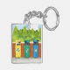 En rad färglöst tunna som återvinns. Den här designen ser ut att vara effektiv i den här nyckelkedjan