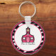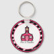 En nyckelkedja med logotypen Rosa Schoolhouse i zebra tryck ram med rosa trim. Texten lyder "Pre-K Teacher".