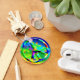 Ett grafiskt fredstecken med blommor efter artist/designer Charmaine Paulson i en nyckelkedja.