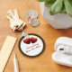 En bild av jordgubbar i hjärtform på en nyckelkedja. Nyckelkedjan har mallar för anpassade för texten.