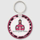 En nyckelkedja med logotypen Rosa Schoolhouse i zebra tryck ram med rosa trim. Texten lyder "Andra Klass-läraren".