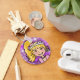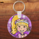 Cute prinsessan med blonde stollig-lila rosa nyckelring. Ursprunglig design och typografi av Sarah Trett för www.mylittleeden.com