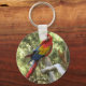 Ett fantastiskt foto av en vacker rödmakakapapegoja på ett gren som väntar på att han ska närma sig en nyckelkedja