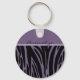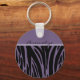 Nyckelkedjemallen för anpassningsbar Basic-knapp har svart och lila zebra eller tiger rand mönster.