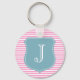 Nyckelkedja för personlig i monogram | inledande J brev. Elegant brev med anpassadets bakgrund färg. Tur presentidé för kvinnor och flickor. Rosa rand mönster med turkoemblemsköld.