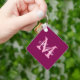 Personlig röd fyrkantig nyckelkedja vin färg i namn. Vintage initial brev med elegant skripttypografi. Cute-favorithjälp för kvinnor och flickor i trendiget. Gör din egen monogrammade present. Utskrift på dubblans sida.