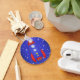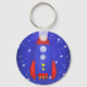 En blå och röd frakt sprider sig genom rymden, i den här lilla rymden älskare design!