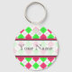 En nyckelkedja med en shock rosa- och kalkgrön argumentbakgrund med shock rosa trim. Anpassa med ditt namn över hela mittsektionen.