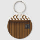 Denna konstruktion är en brun grind som har ett biet av trellis-konstruktionsarbete överst. Den här trädesignen grind ser underbar ut i den här nyckelkedjan. Perfekt för dig själv eller som gåva