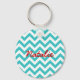 Hip och det moderna Trendiget Chevron Keychain. Den här nyckelkedjan för coola har en chevron zig zag mönster i turkos och vitt. Lägg till text till den här designen till ge genom att trycka på den personligen.