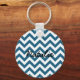 Hip och det moderna Trendiget Chevron Keychain. Den här nyckelkedjan för coola har en chevron zig zag mönster i blått och vitt. Lägg till text till den här designen till ge genom att trycka på den personligen.
