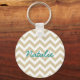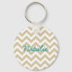 Hip och det moderna Trendiget Chevron Keychain. Den här nyckelkedjan för coola har en chevron zig zag mönster i beige och vit. Lägg till text till den här designen till ge genom att trycka på den personligen.