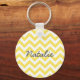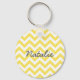 Hip och det moderna Trendiget Chevron Keychain. Den här nyckelkedjan för coola har en chevron zig zag mönster i gult och vitt. Lägg till text till den här designen till ge genom att trycka på den personligen.