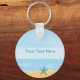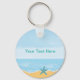 Innehavare av persikotema nyckel, inklusive en vacker bild av en grafisk strand, en stjärnfisk på sanden och textutrymme som du kan anpassa med ditt eget meddelande i en designad skapat för barn eller vuxnor som en gåva eller partiförmån.