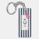 Den här nyckelkedjan har en fetstilt marin blå och vit bakgrund i rand, faux guld gräns och en söt rosa i mjuka vattenfärger. Samordnar med våra Rand & Rosa Peony-kontorstillbehör, pappra produkter och tillbehör. Anpassa med ett monogram, namn eller text som du vill ha!