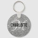 Nyckelkedjan chic glitter med ett vitt skriptmonogram och ett svart typografi namn. Anpassa med ditt namn och inledande.
