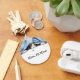 Den ursprungliga bran av en tuxedo-kattunge som stjälkar en blåflaska med designern/illustratorn Carolyn McFann av Two Purring Cats Studio.