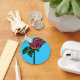 Den här nyckelkedjan för söt har ett färgstarkt ro på en himlar blå bakgrund