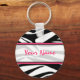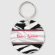En nyckelkedja med svart och vit bakgrund och shock rosa från zebra tryck. Anpassa med ditt namn över hela mittsektionen.