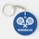 Nyckelkedjegåva för runda anpassningsbar för mönsterspelare. Lägg till din egen text som en namn, rolig slogan, citat, skämt, ordspråk. Cute Birthday-partiet gynnar för manar kvinnor och barn. (pojke eller flicka), nyckelringar för Anpassningsbar med korsade racketar och utformning av logotypen för boll. Blått eller anpassningsbar bakgrund färg.
