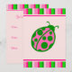 En rosa och grön nyckelpiga är huvudattraktionen på denna inbjudan! Använd dessa nyckelpiga-inbjudningar för en födelsedag, födelsedagsfest, fest, öppen hus, poolparty, picknick, baby shower, mottagning, firande, trädgårdsfest, te, sweet sixteen, etc... Anpassa efter dina behov. Designen är från en originalillustration.
