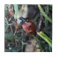 En keramisk platta med ett foto av en nyckelpiga.