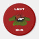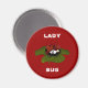 Ladybug kylmagnet i rött med en bild på en ladybird på löv med ord ladybug i vitt