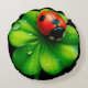 Nyckelpiga på ett daggbeväxt blad rund kudde