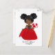 Födelsefestinbjudan med en liten svart prinsessa i en nyckelpiga klänning och söt nyckelpiga typografi på baksidan.