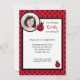 Den gulliga födelsedagfotoinbjudan med en svart och den röda polkaen pricker bakgrund och en koppla ihop av lite nyckelpigor. Skriv in ditt barns foto i det förutsatt att utrymmet.