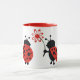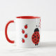 Nyckfull combo mugg med en para av nyckelpigor och en blomma i rött, svart, och vit.