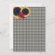 Sött flickmotiv för 1:a Drive Through födelsedagsfest med en grupp nyckelpigor med solrosor på en gul och vit ram med en svart-vit rutig bakgrund. Det rutiga mönstret, solrosorna och nyckelpigemotivet fortsätter på baksidan. Sammansatt vektordesign med originalillustration av nyckelpigor av Holiday Hearts Designs (rättigheter förbehållna).
