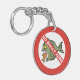 Förbjudet tecken över arg fisk som mobbar en liten. Anpassad bakgrundsfärg och anpassad text på baksidan.