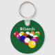 Nyckelkedja för utformningen av Billiard Bollar med anpassade text och färg i bakgrunden.