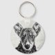 En cool nyckelring med en skiss av en hunds ansikte som tittar rakt på dig.