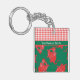 En Nyckelring på roligten Square som du kan anpassa, med land-stil, blanda mönster av söta röda drakar på gröntens bakgrund och röd och vit check gingham.