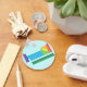 Nyckelkedja med periodiskt återkommande bord i inslag, där varje inslag-grupp markeras i regnbåge i färg.