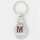 Blue Filigree Damask White Grått Swirly Design Pappra Struktur monogram för Pappra Struktur initialt Nyckelring