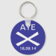 En nyckelring för anhängare av skotskt oberoende från den brittiska regeringen Westminster. Utformningen har en stiliserad St Andrew's kor, som man ser på den skotska flagga, även känd som saltire, med ord, "Aye", som är skotte för ja, och datumet för folkomröstningen om Skottlands självständighet, 18.09.14.