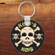 En skalle och korsben utgör den här roligtens nyckelring. Anpassade så att du kan lägga till en egen text och ändra färg i bakgrunden. Underbar för att fylla på lagren!